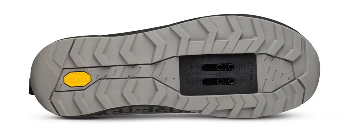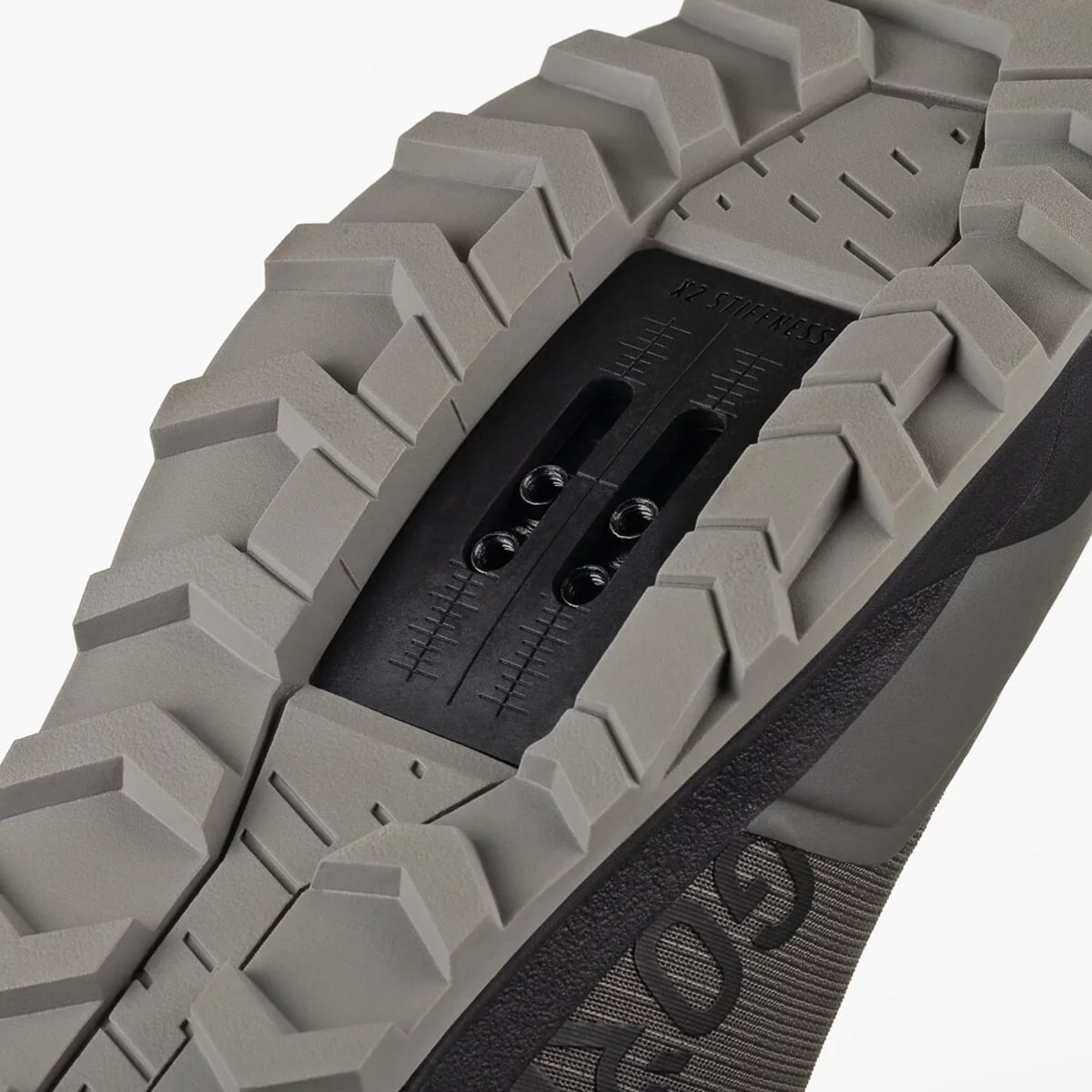 Podrážka X2 je navržena tak, aby nabízela rovnováhu mezi tuhostí pro efektivní šlapání a flexibilitou pro chůzi (např. při tlačení kola). Kompresní EVA vložka dodává tlumení, Vibramová gumová směs zajišťuje trakci a agresivní vzorek („directional lugs“) přispívá k jistému kontaktu na různém povrchu.