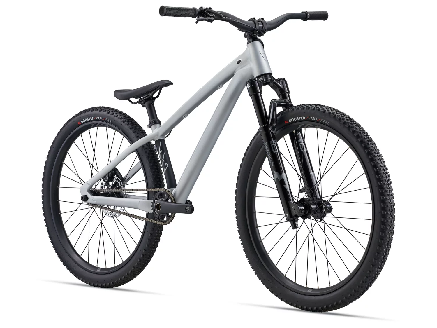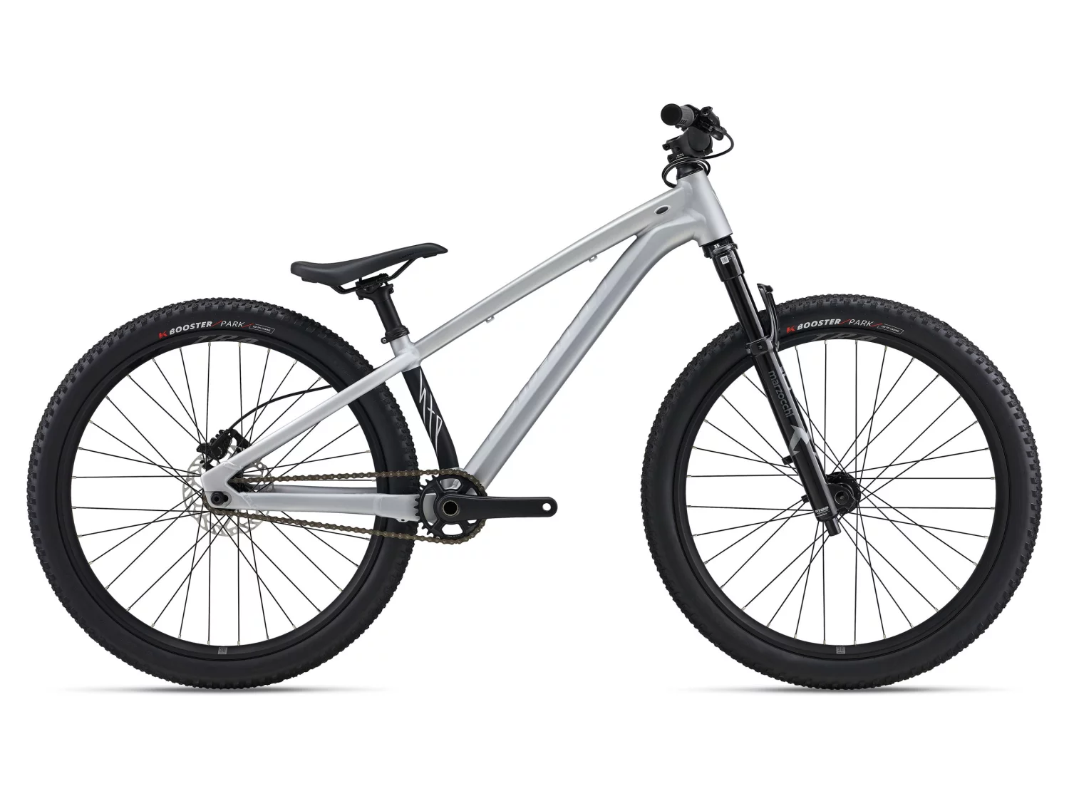 Výbava je zvolená přesně pro tenhle styl jízdy. Kolo má vidlici Marzocchi Bomber DJ se zdvihem 100 mm, která je stavěná na skoky a dopady, a díky 26” kolům je kolo v technice rychlé a přirozené. Ráfky Giant TRA 2 26” s technologií Wide Guard zvyšují odolnost a pomáhají proti defektům, pláště Kenda Booster 26×2.25 dávají dobrou trakci na hlíně i tvrdém povrchu a kotoučové brzdy zajišťují jisté brzdění při agresivní jízdě. Rám je navíc připravený na gyro systém, takže kolo lze postavit i pro triky typu barspin.