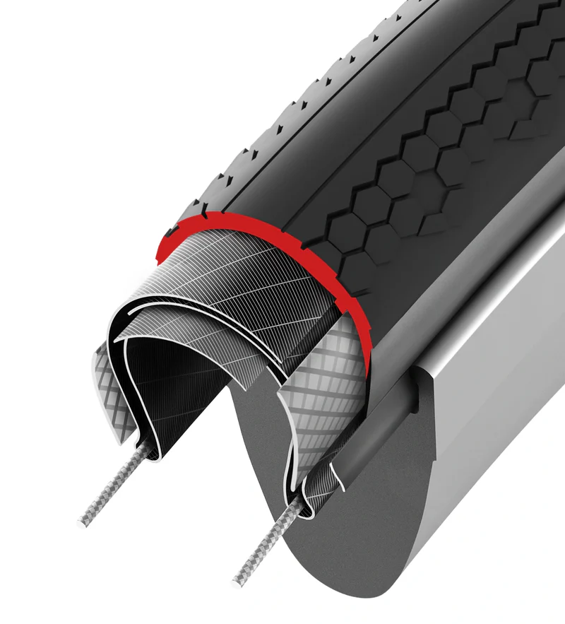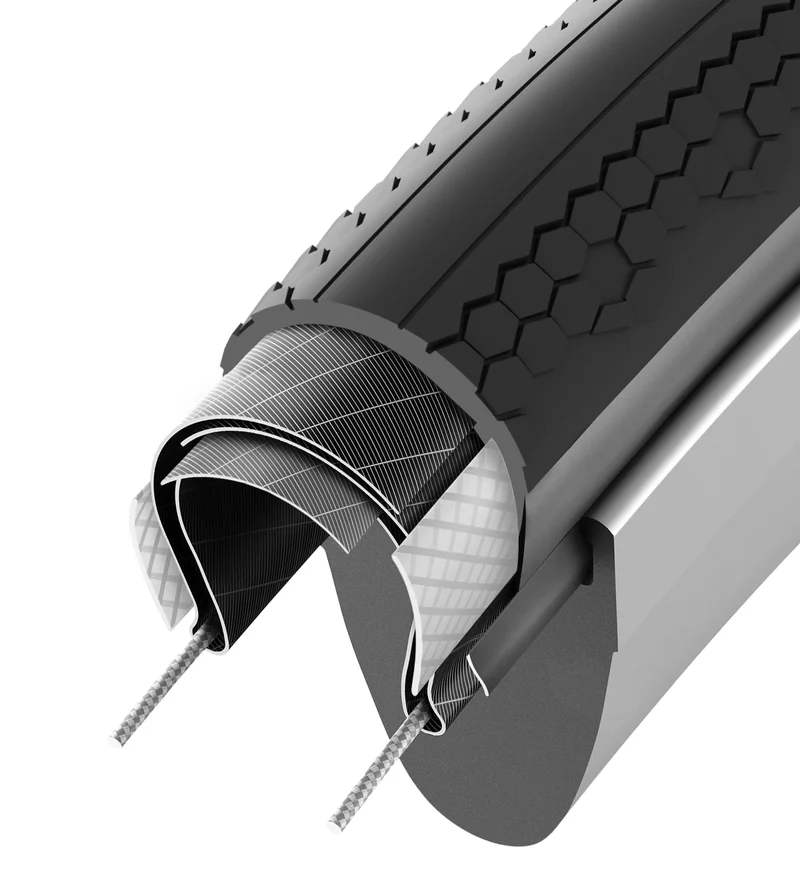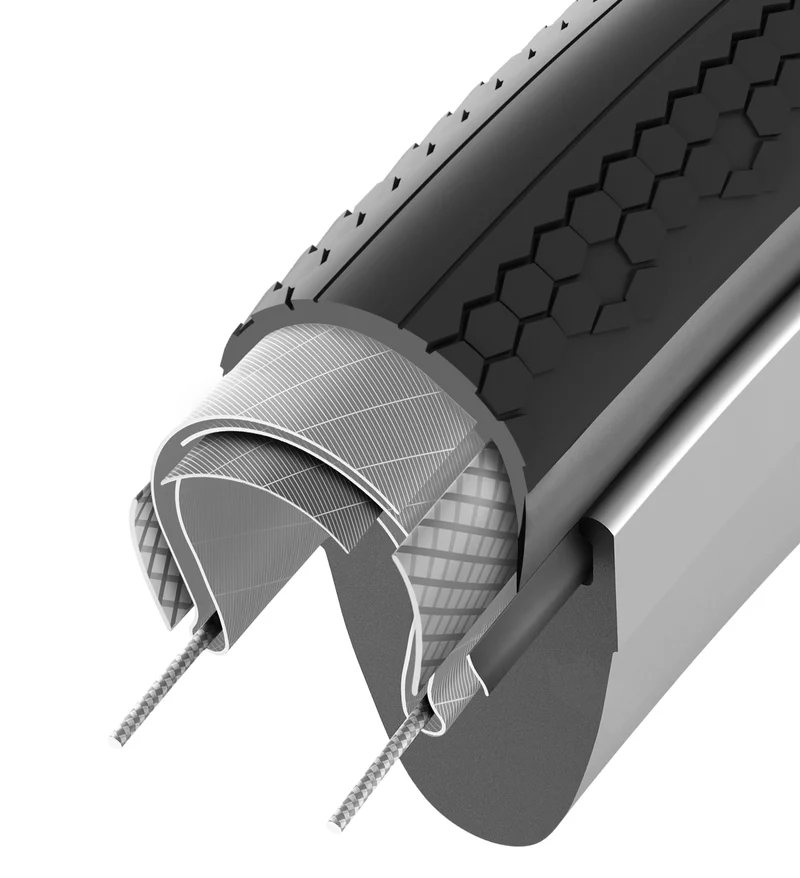 Kostra z nylonu 100 TPI je navržená tak, aby zvládla náročné gravel ježdění. Odolná vlákna snižují valivý odpor a zároveň zachovávají citlivý projev, lépe tlumí vibrace pro vyšší komfort a kontrolu na rozbitém povrchu. Je stavěná na dlouhou životnost a spolehlivý výkon při každé jízdě.
